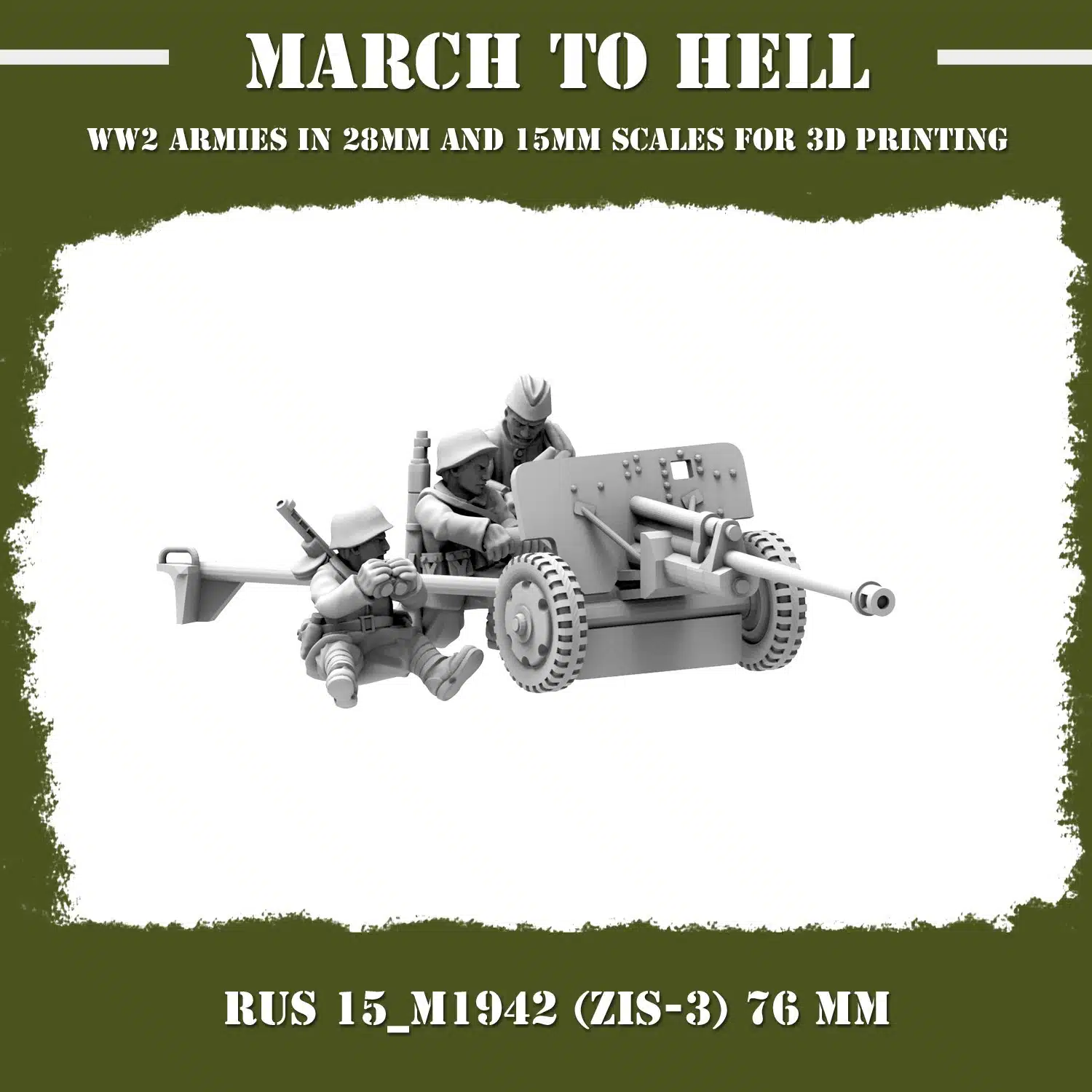 Canon 76mm ZIS-3 M1942 Soviétique – Seconde Guerre mondiale – Échelles 15 mm, 20 mm et 28 mm