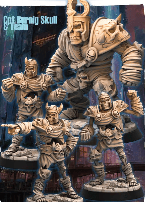 Ce set comprend 1 figurine de créature de neokingdom Capitaine BurningSkull et 3 figurines de squelettes formant son équipe idéales pour de la collection, pour vos armées de personnages science-fiction, d’univers manga ou scénarios de jeux de rôle.