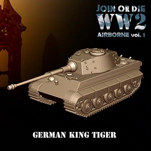 Char King Tiger ou Tigre II Allemand – Seconde Guerre mondiale – Échelles 28 mm – Gravure Réaliste.