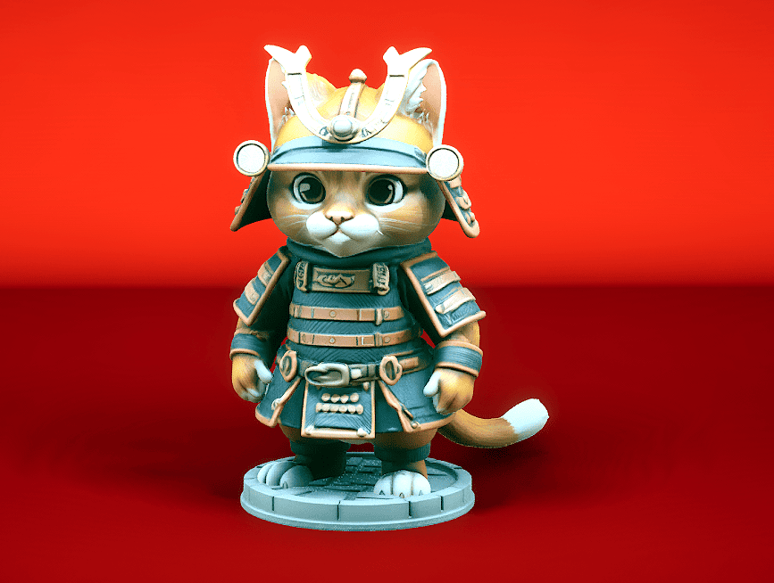 Chat samouraï numéro 3 – Hauteur 32mm ou 75mm socle compris