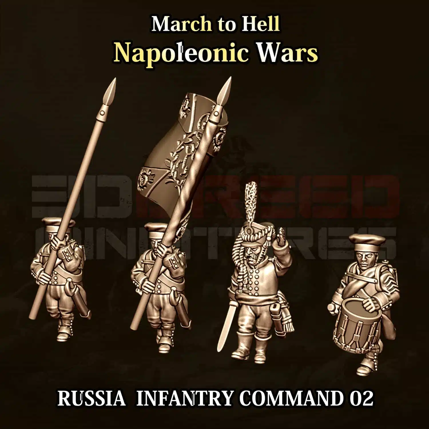 Ce set comprend 4 figurines représentant des Soldats de Commandement de l’armée impériale russe pendant les guerres napoléoniennes, parfaites pour vos armées du Tsar, reconstitutions historiques ou wargames napoléoniens.
