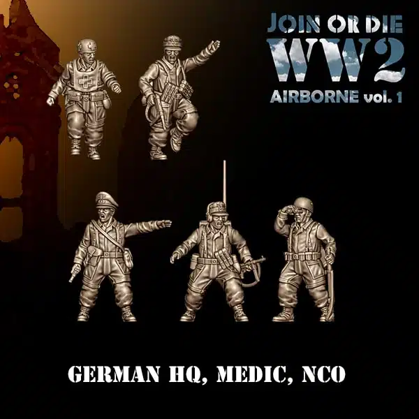 Commandement Médecin NCO sous officiers Parachutistes Allemands – Seconde Guerre mondiale – Échelle 28 mm – Gravure réaliste
