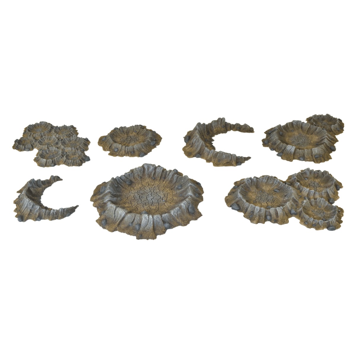 Ce set comprend 7 cratères parfaits pour vos champs de bataille de la Première Guerre mondiale ou pour des conflits apocalyptiques.