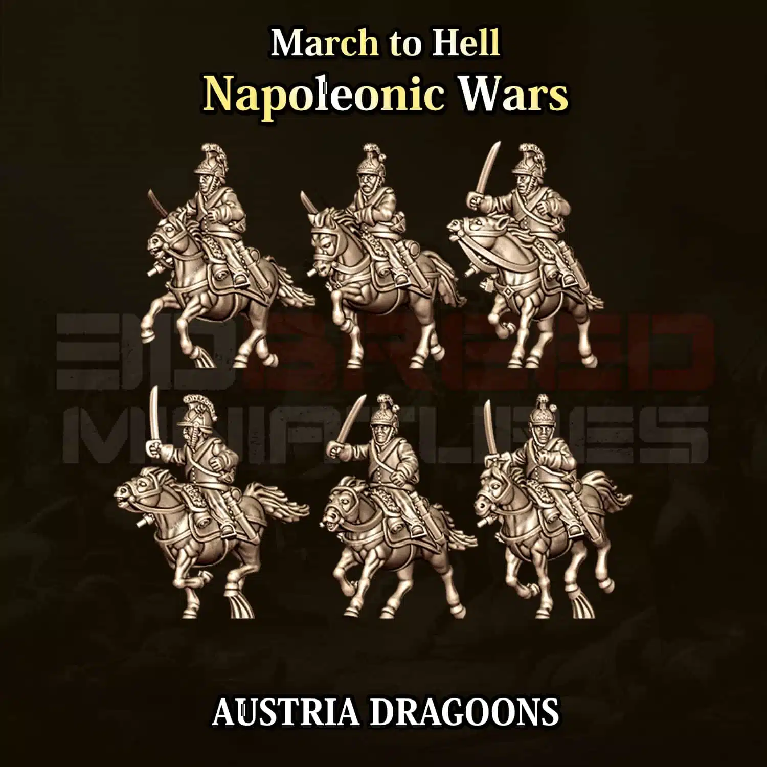Ce set comprend 6 figurines représentant 6 Cavaliers Dragons lourds de l’armée impériale autrichienne sous les guerres napoléoniennes, idéales pour vos armées de l’Empire d’Autriche, reconstitutions historiques ou batailles stratégiques sur table.