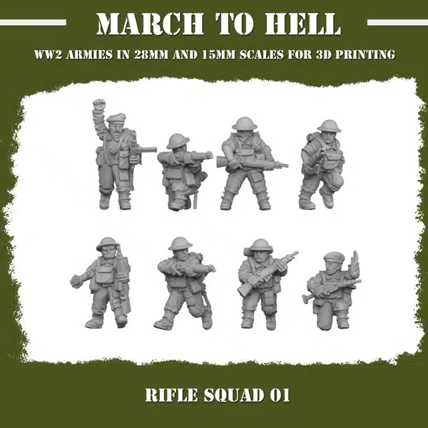 Escouade avec fusil 1 Britannique – Seconde Guerre mondiale – Échelles 15 mm, 20 mm et 28 mm