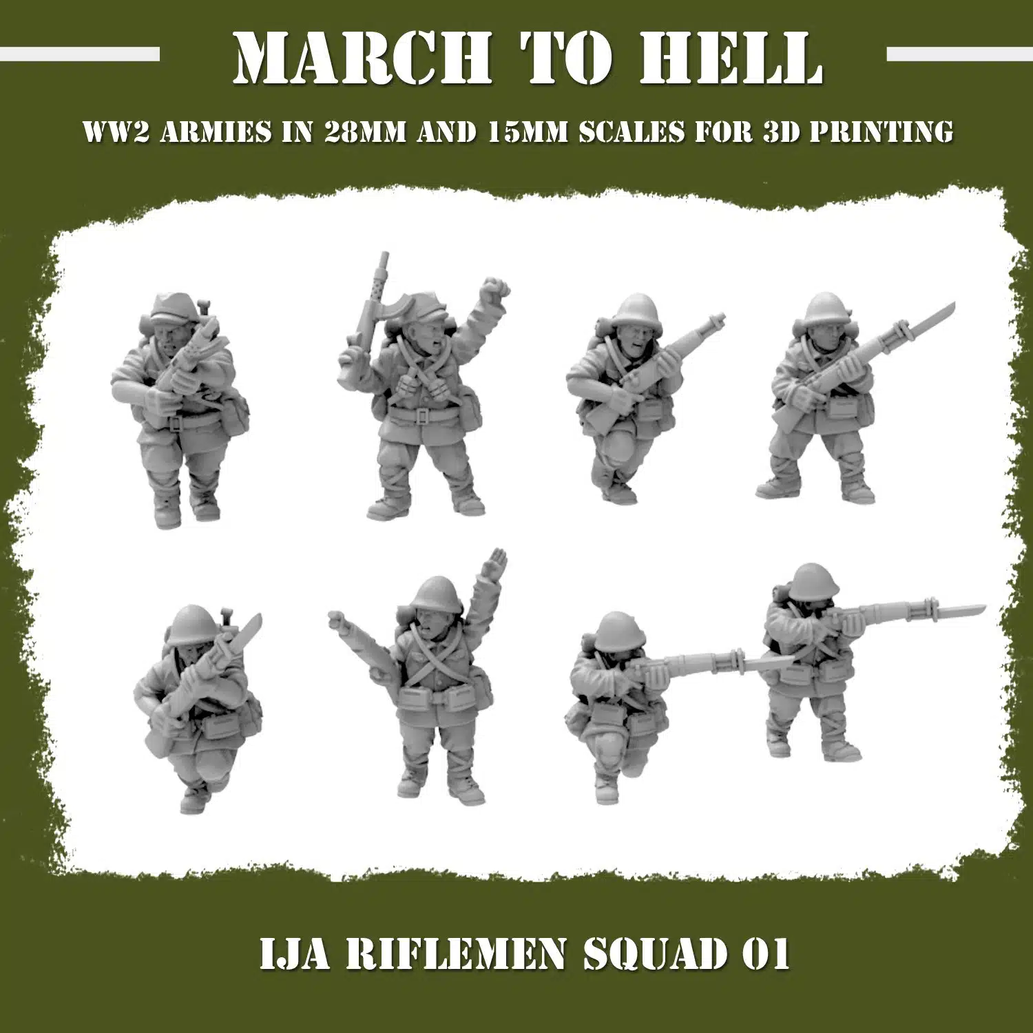 Escouade avec fusil Japonais 1 – Seconde Guerre mondiale – Échelles 15 mm, 20 mm et 28 mm
