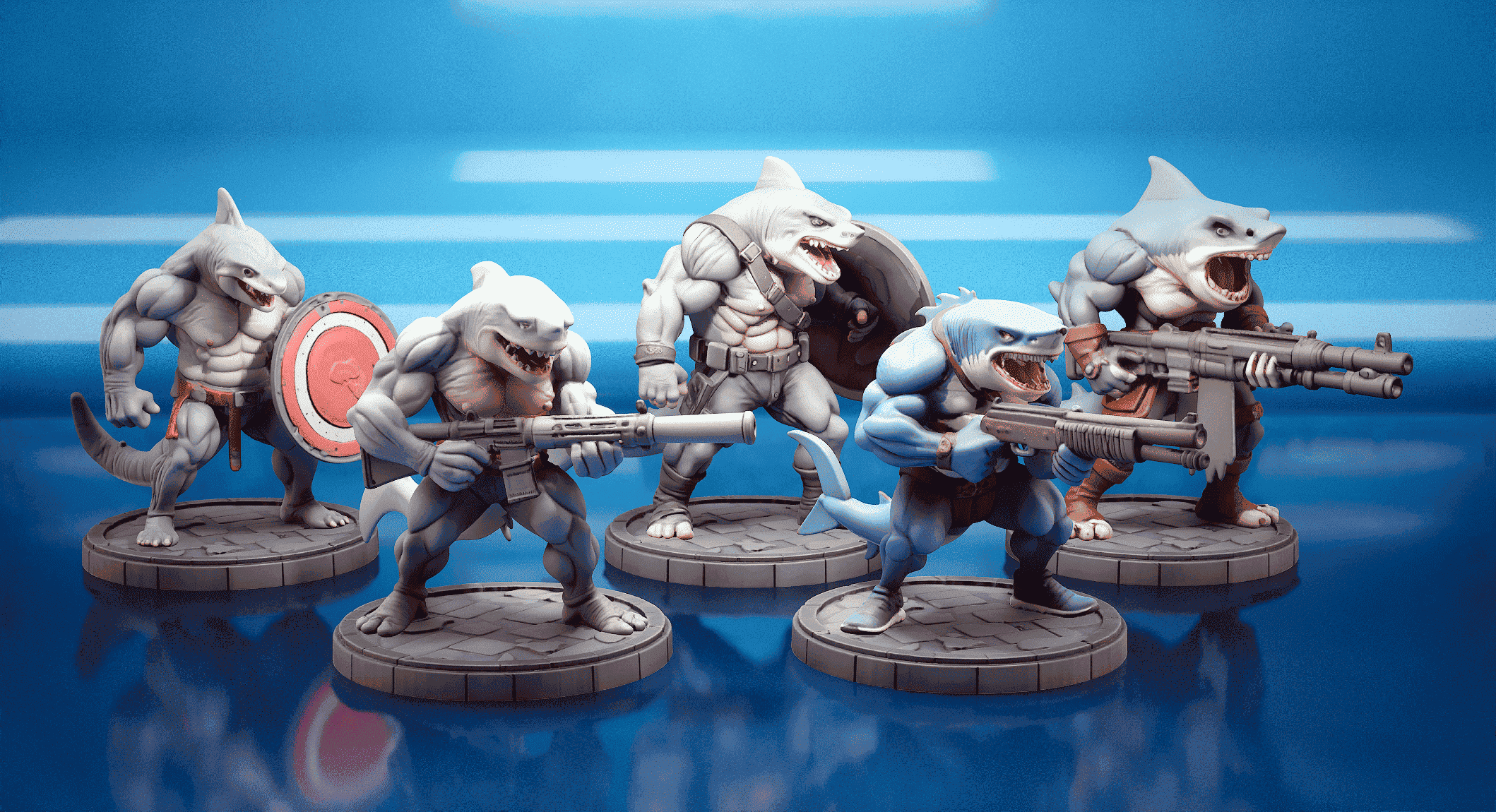 Escouade de requins soldats – Hauteur 32mm ou 75mm socle compris