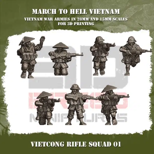 Escouade Viêt-Cong avec fusil – Échelles 15 mm, 20 mm et 28 mm