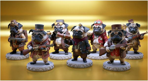 Ce set comprend 7 figurines de chiens steampunks créant la garde entière idéales pour de la collection, de l’exploration de donjons, pour vos armées de personnages d’animaux chibis ou scénarios de jeux de rôle.