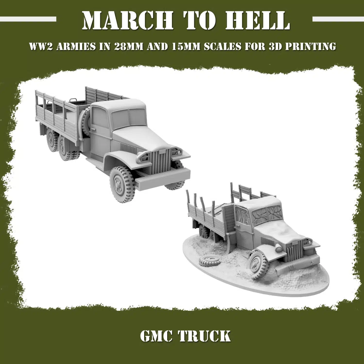 GMC Truck intact et détruit Américain – Seconde Guerre mondiale – Échelles 15 mm, 20 mm et 28 mm