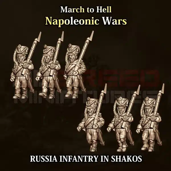 Ce set comprend 6 figurines représentant des soldats de l’infanterie avec Shako de l’armée impériale russe pendant les guerres napoléoniennes, parfaites pour vos armées du Tsar, reconstitutions historiques ou wargames napoléoniens.