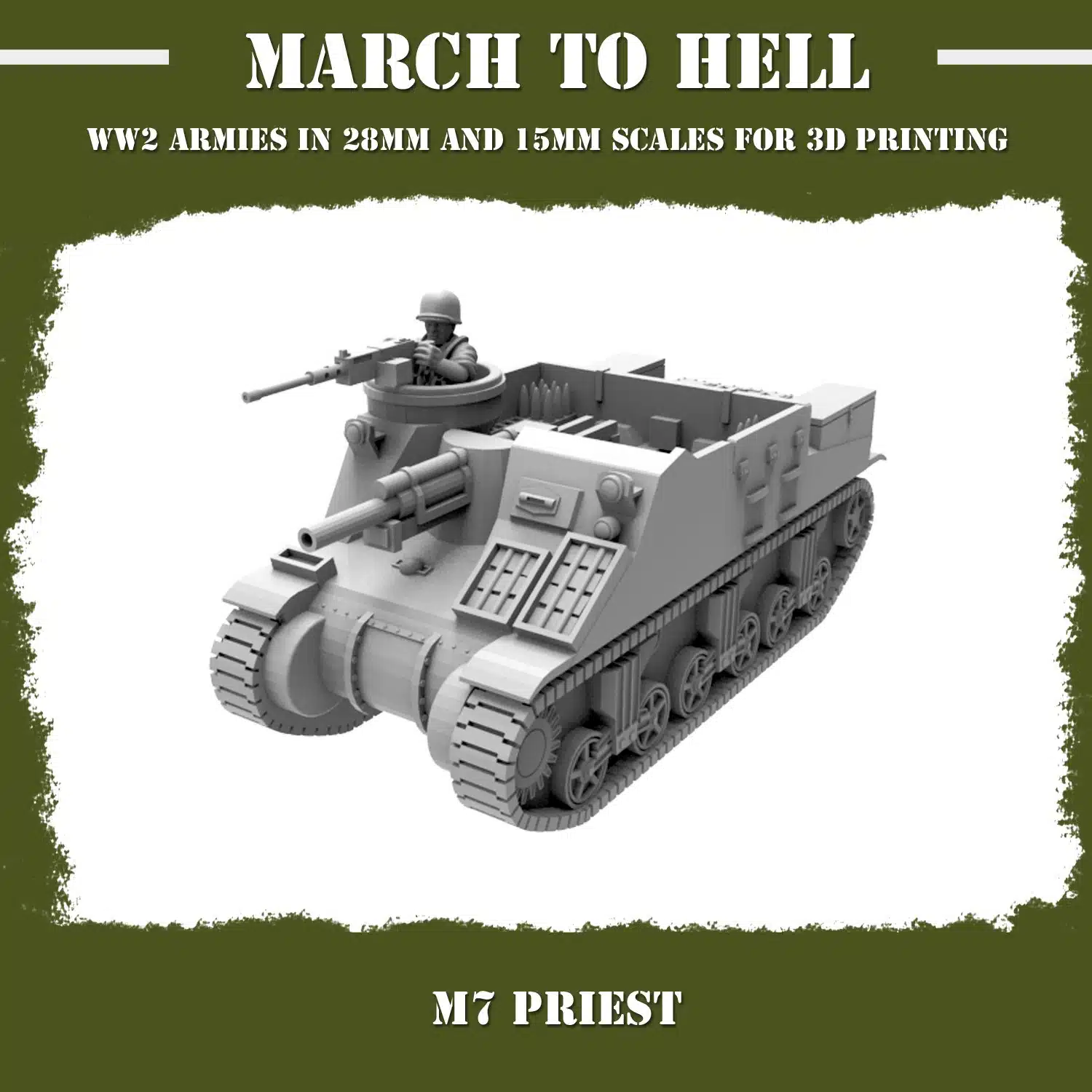 M7 Priest Américain – Seconde Guerre mondiale – Échelles 15 mm, 20 mm et 28 mm