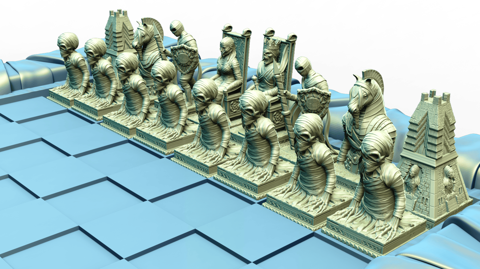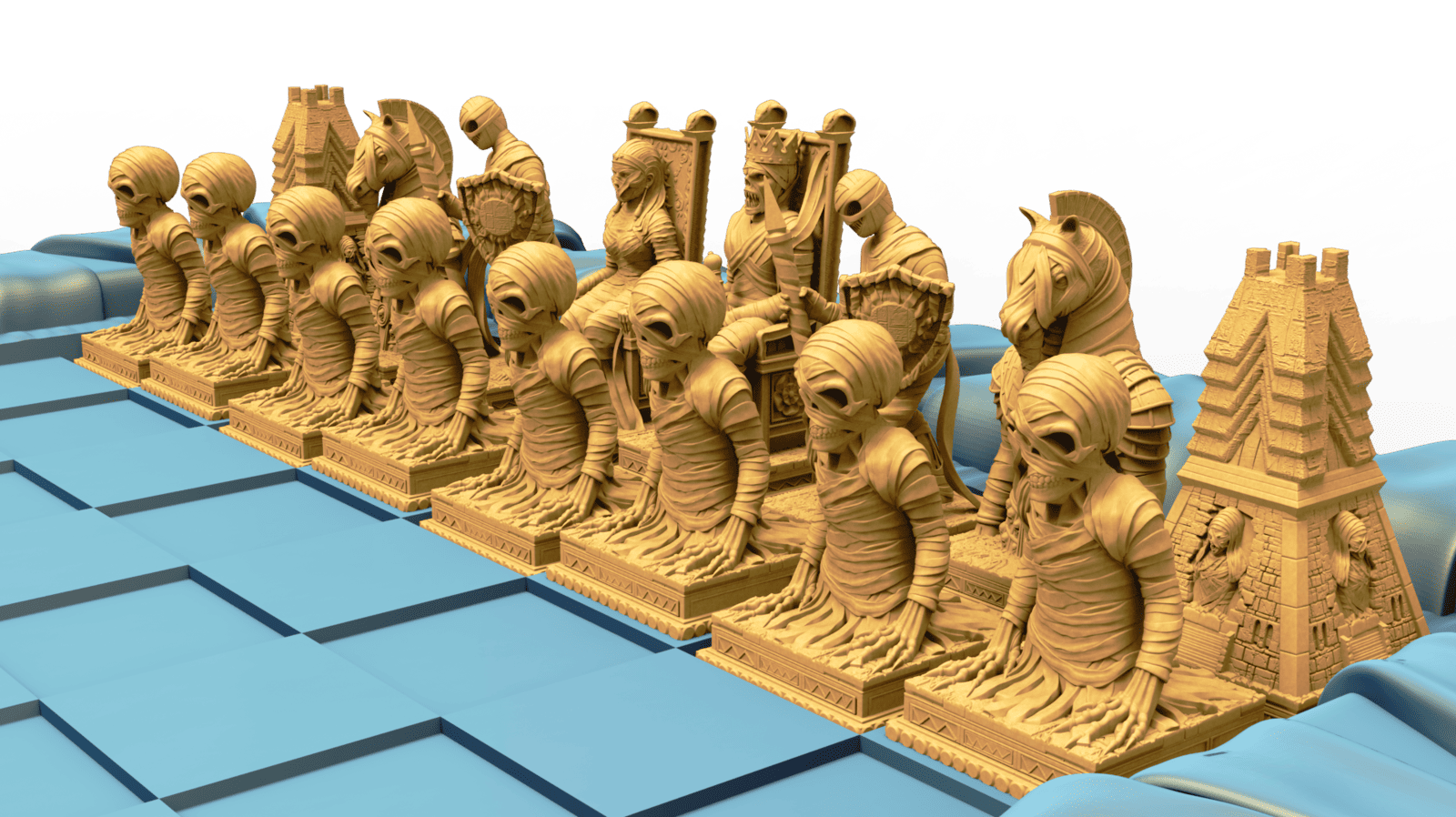 Placez vos pièces d’échecs momie sur l’échiquier et jouez une partie pharaonesque !