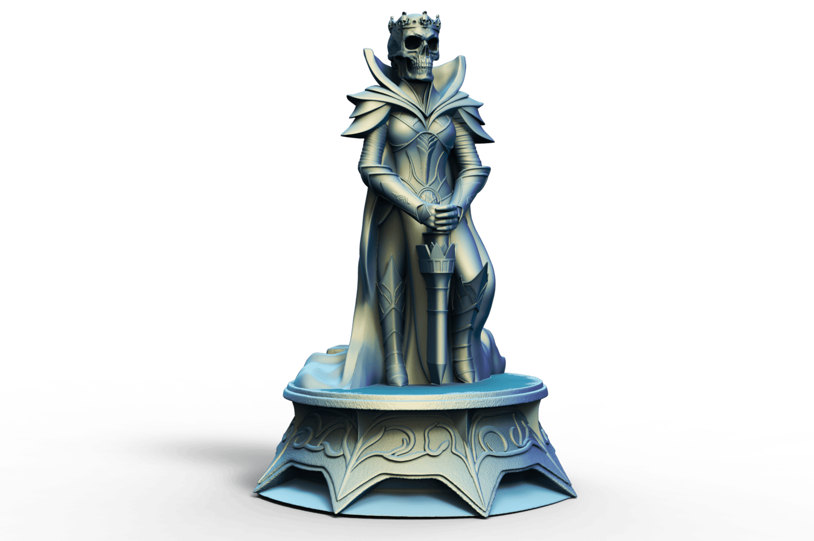 Ce set comprend 32 pièces d’échecs à l’aspect squelette parfait pour de la collection ou des parties passionnantes d’échecs.