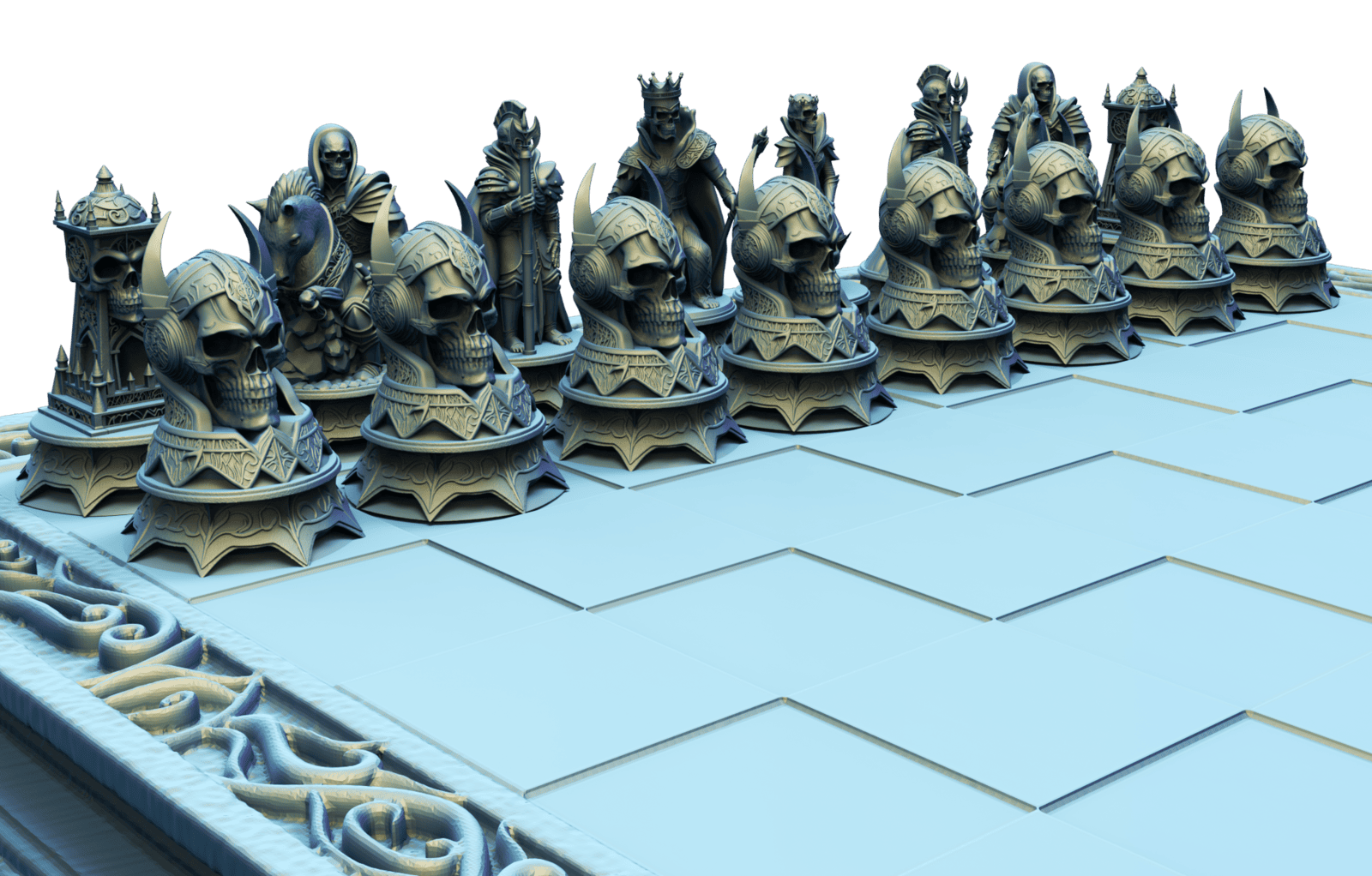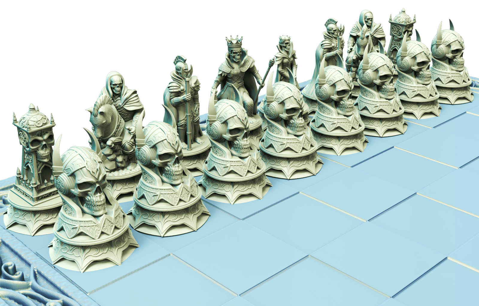 Placez vos pièces d’échecs momie sur l’échiquier et jouez une partie des enfers !