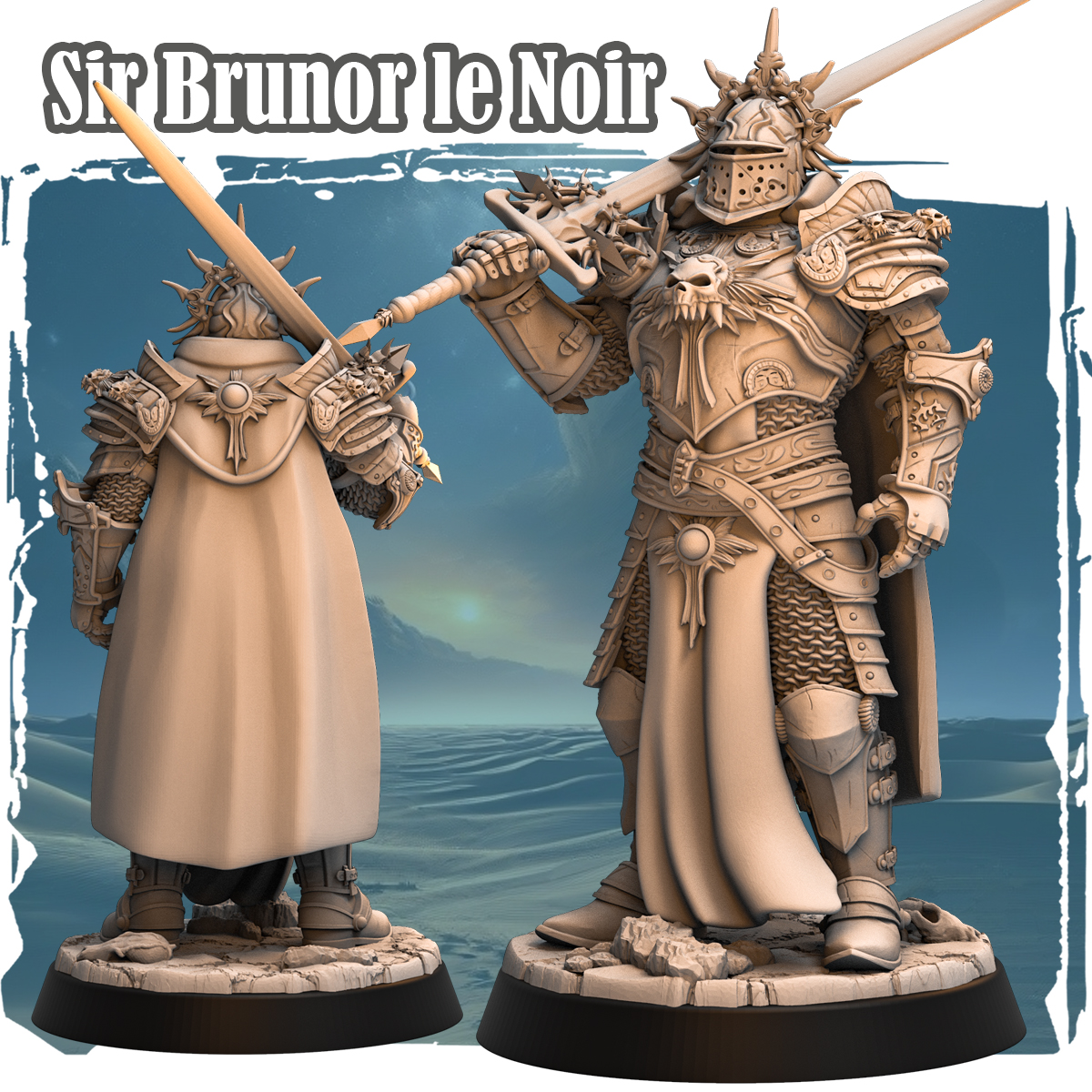 1 Figurine de Sir Brunor le Noir avec dessus de socle, finement détaillée pouvant servir pour des univers Fantasy, d’explorations de donjons. Les modèles proviennent de chez «Haito». Socle noir non inclus.