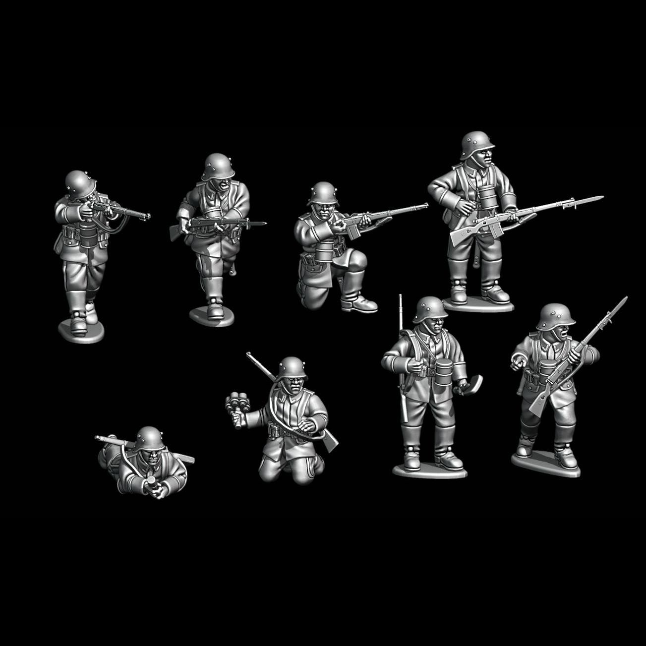 Ce set comprend 8 figurines, soldats allemands de la Grande Guerre, idéales pour vos armées historiques, reconstitutions de batailles, scénarios de wargames ou dioramas militaires.