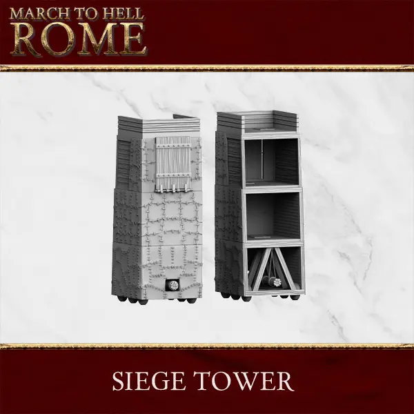 Ce set, en plusieurs parties, comprend plusieurs éléments de décors inspirés de l’Antiquité : 1 tour de siège. Parfait pour recréer des scènes de bataille historiques ou des escarmouches dans l’Empire romain.