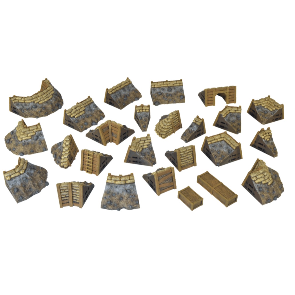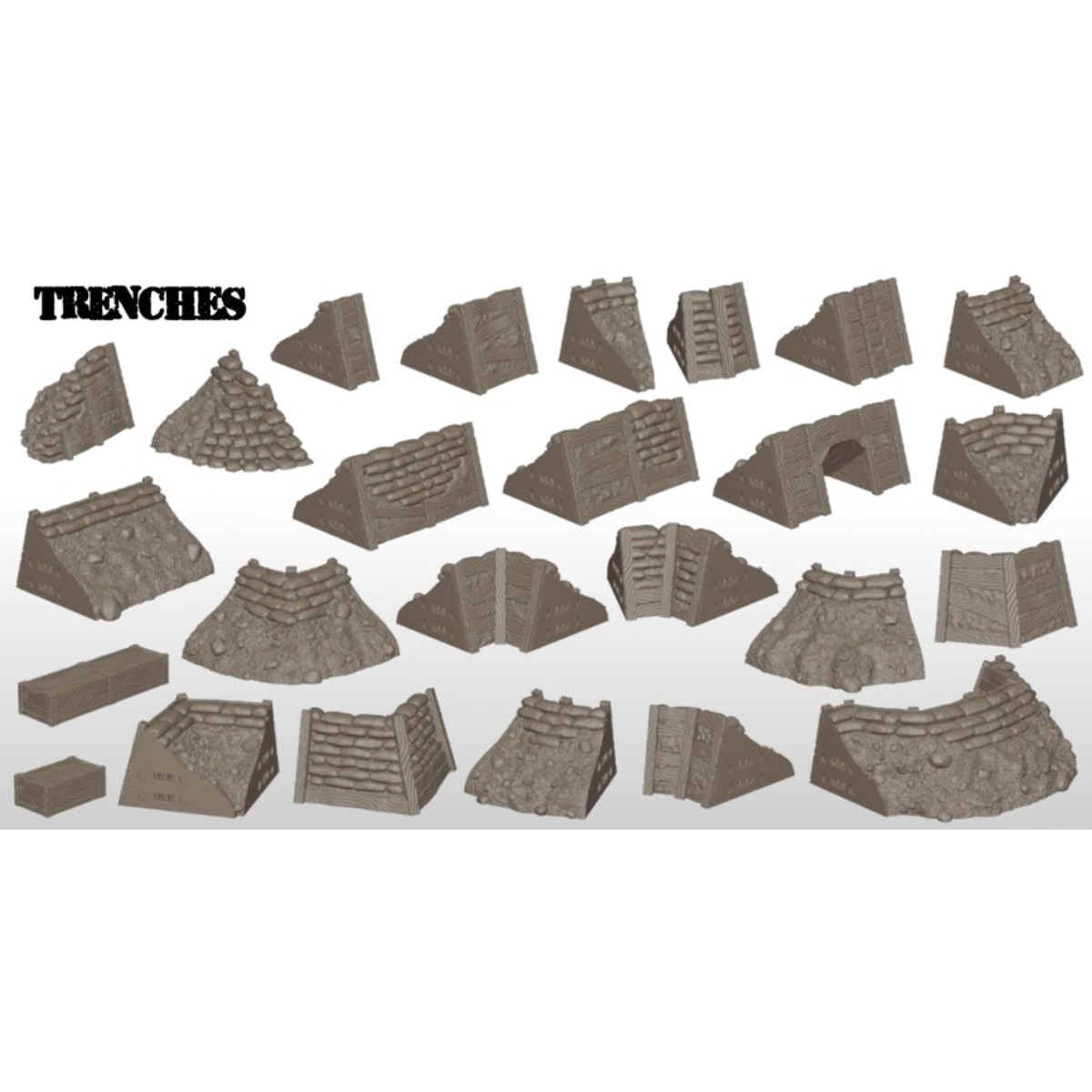 Ce set comprend 23 sections de tranchées: parfaits pour vos champs de bataille de la Première Guerre mondiale ou pour des conflits apocalyptiques.
