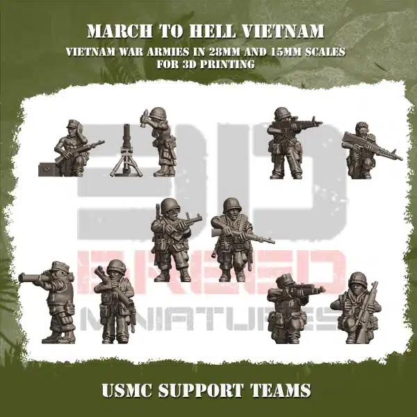 Ce set comprend 10 figurines idéales pour vos armées de la guerre du Vietnam, reconstitutions historiques ou scénarios de jeux de rôle militaires. Compatibles avec de nombreux wargames modernes ou historiques. Imprimées en résine Ameralabs TGM-7 haute qualité, précision 0,035 mm, offrant un rendu net et des détails réalistes.